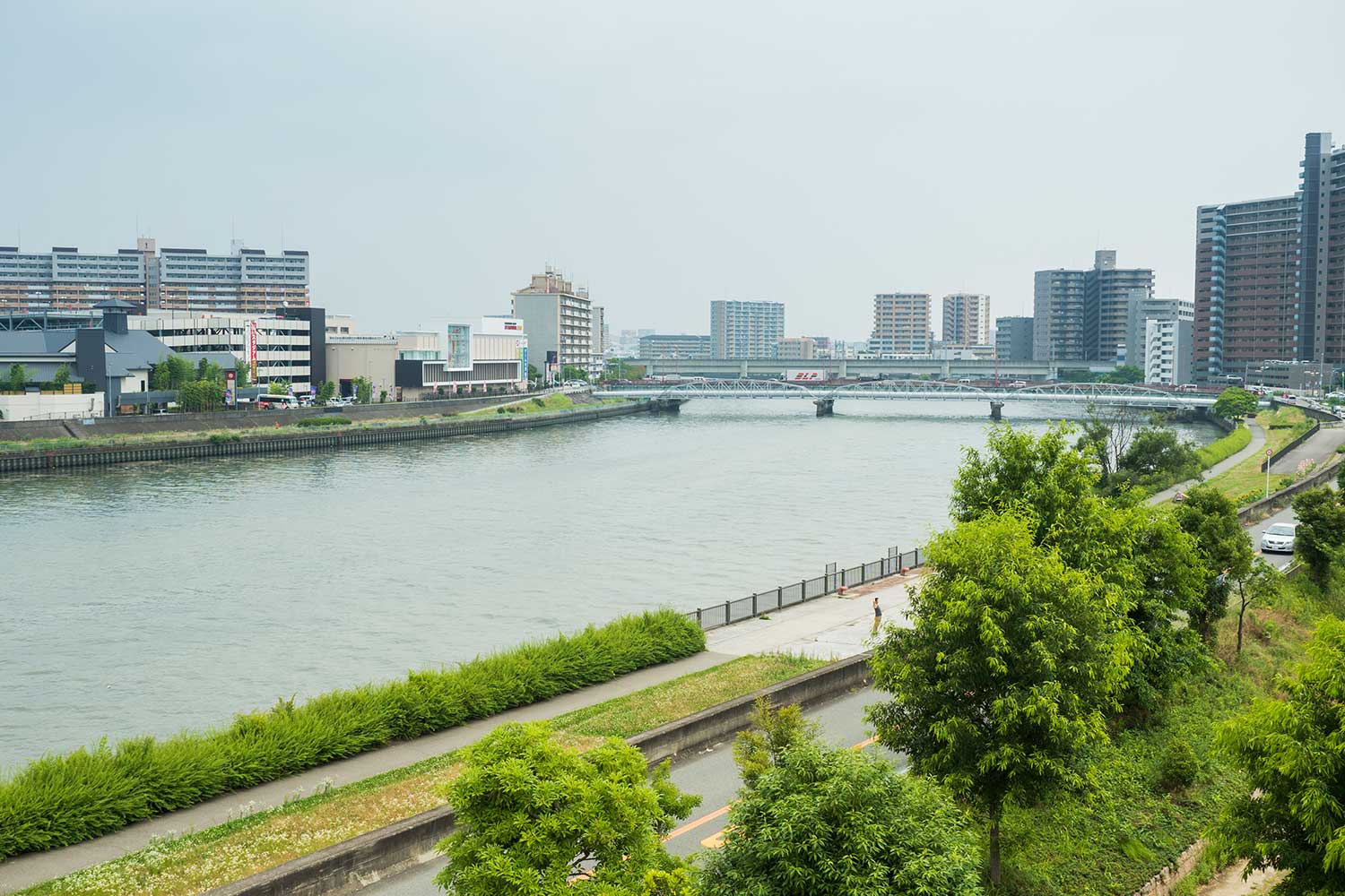 - 工場の脇に流れる神崎川