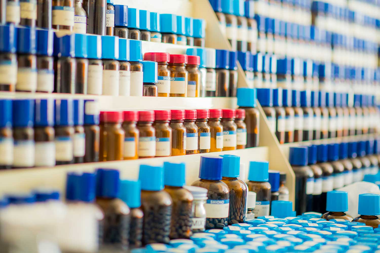 - ずらりと並ぶ香料瓶